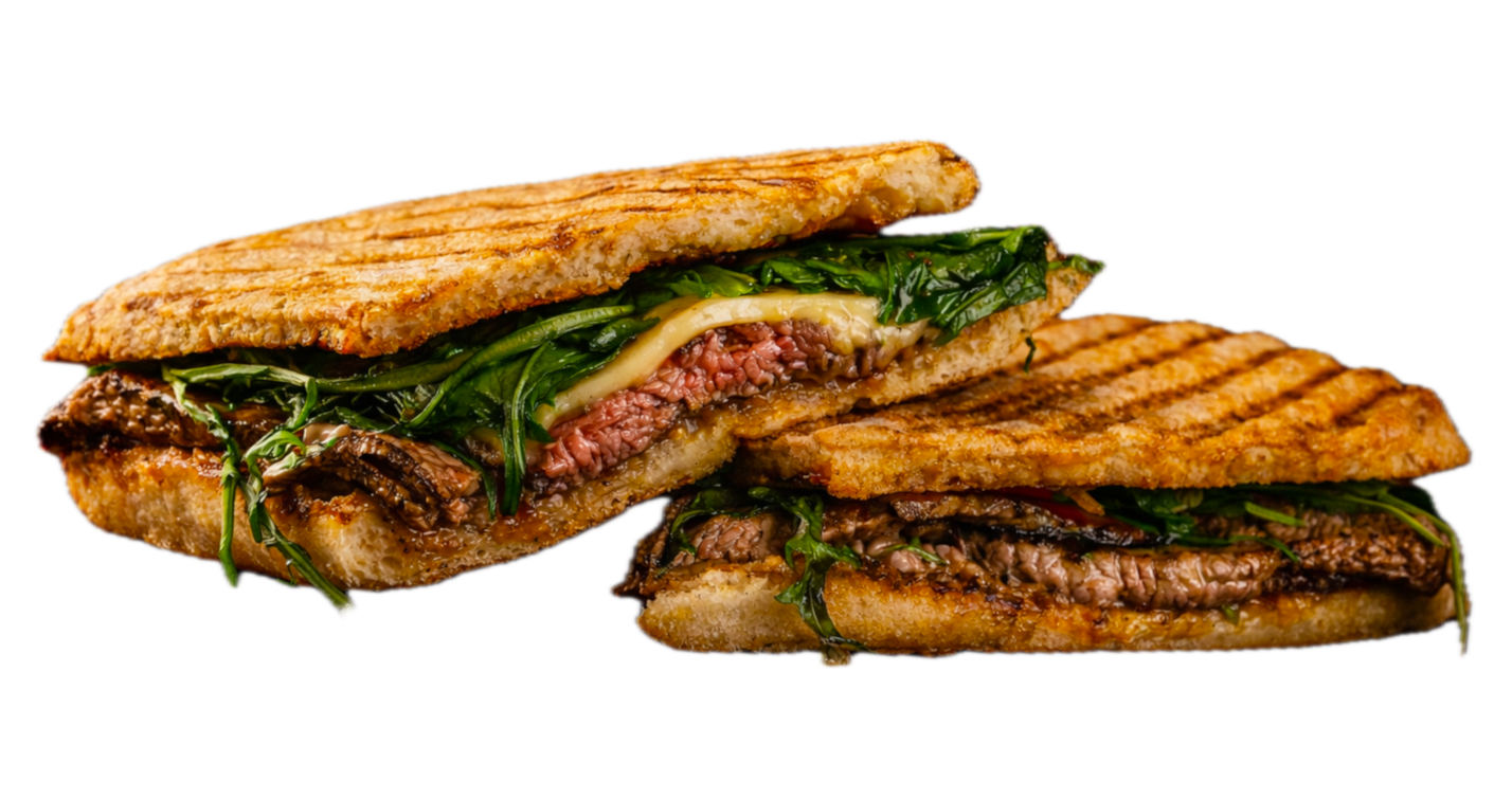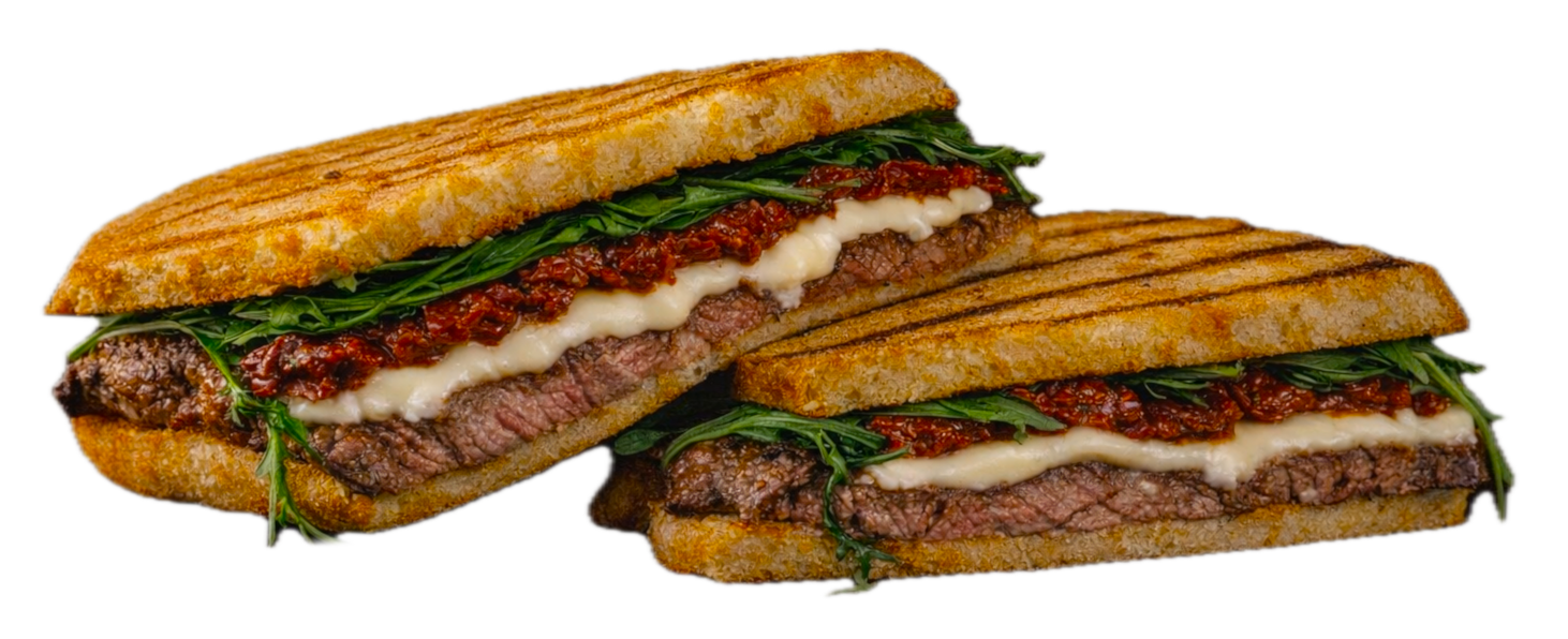 Zartes Rindssteak im knusprigen Panino mit frischem Rucola, Le Gruyère AOP und Knoblauch-Mayo-Sauce